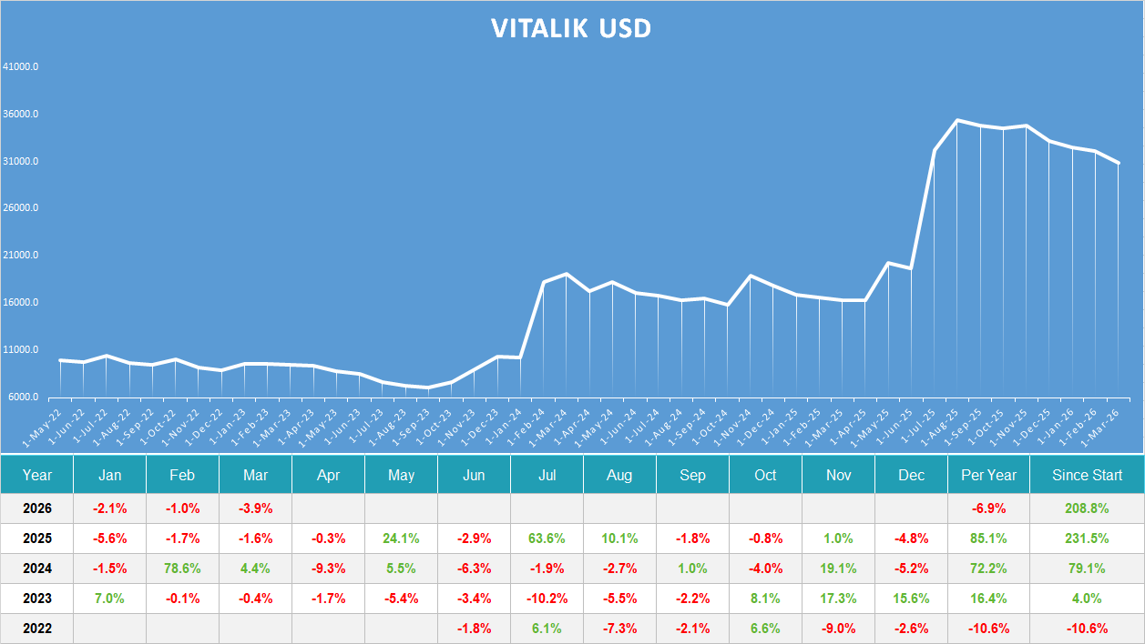Vitalik provides clean, process-led exposure to Ethereum’s directional risk—both upside and downside—without committing to permanent buy-and-hold. It complements multi-asset crypto trend sleeves and non-crypto models, helping to pursue a smoother risk-adjusted profile at the total portfolio level.