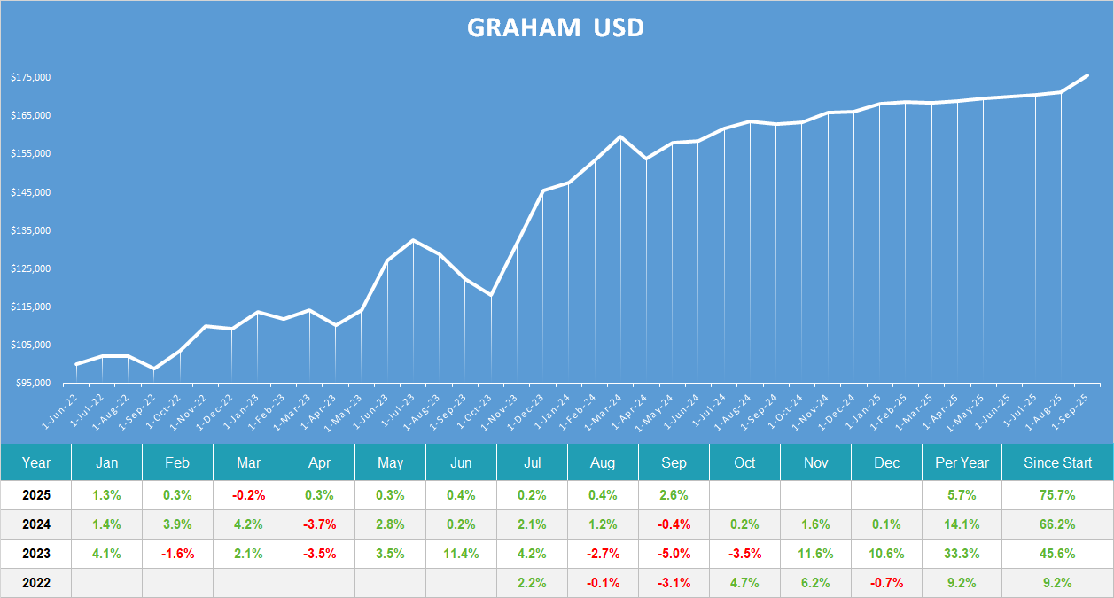 Graham Real Trading Graham program after deduction of all costs in USD Graham Minimum account size in Graham is $50 000. Investment in undervalues stocks only.